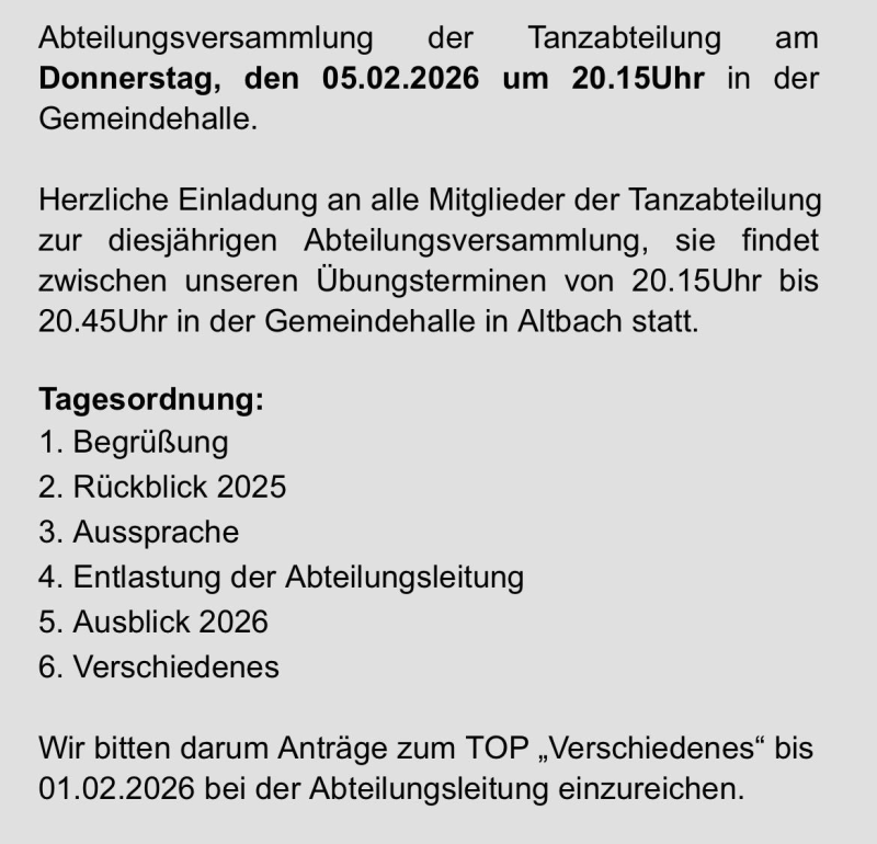 Am 10.12.2026 findet zum Jahresabschluß eine gemeinsame Weihnachtsfeier beider Gruppen im Schießhaus in Altbach statt.